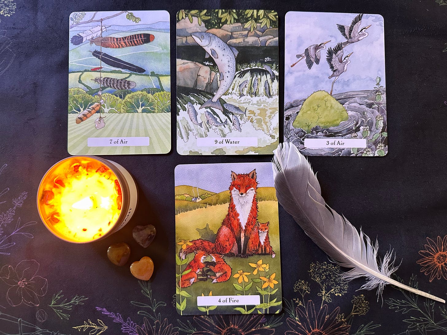 4 of Fire: Hearth Fire. The wisdom of the card in this position: If you come home to yourself, a light will shine within you that burns as bright for those around you.